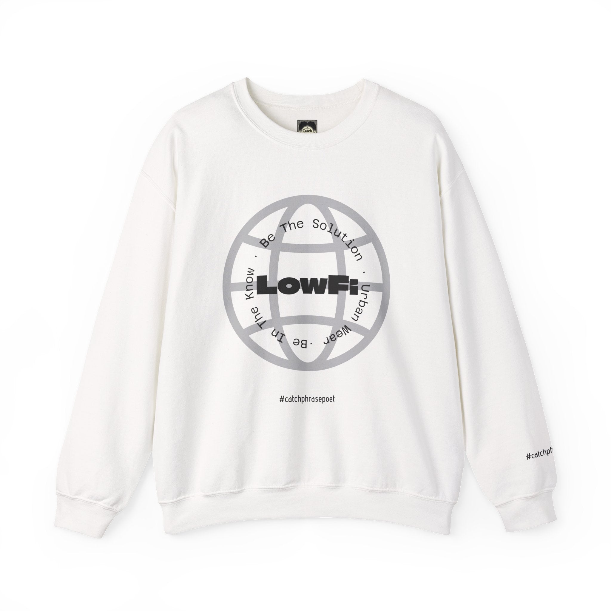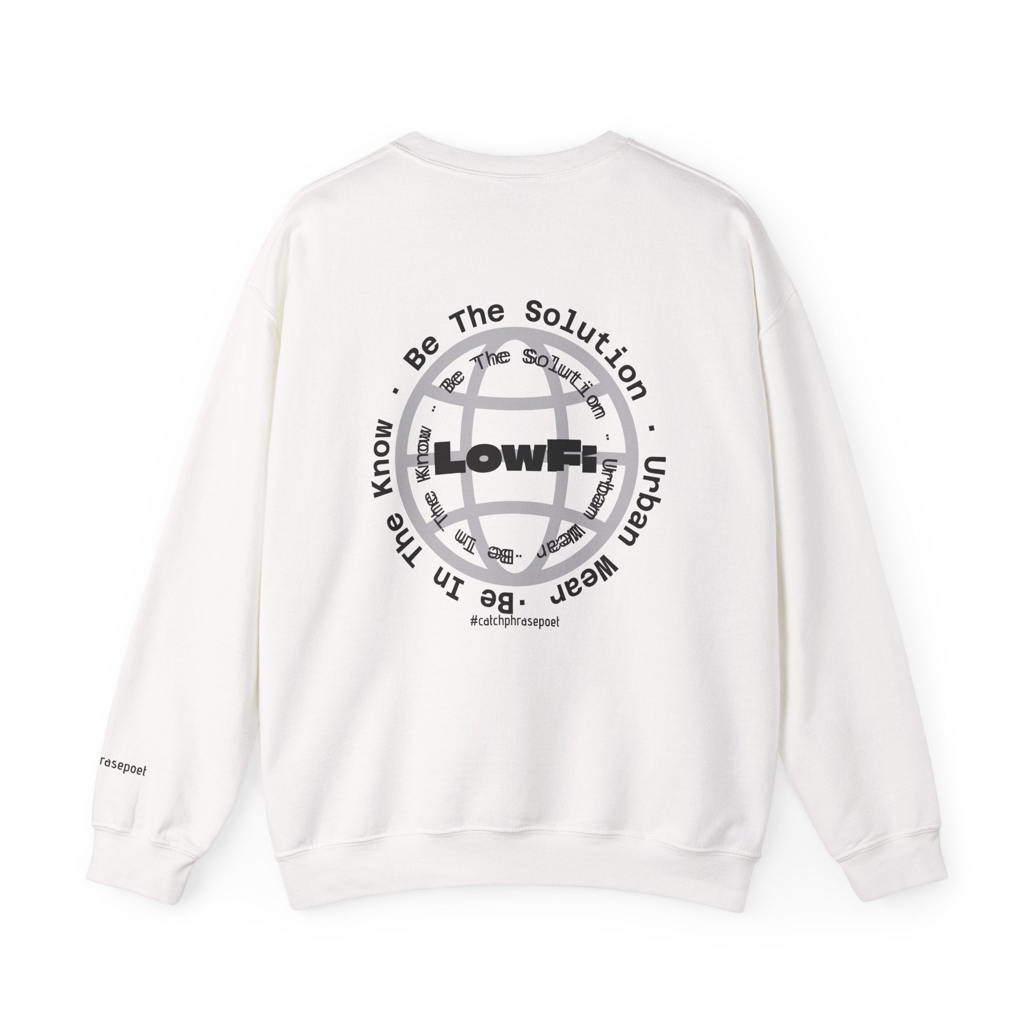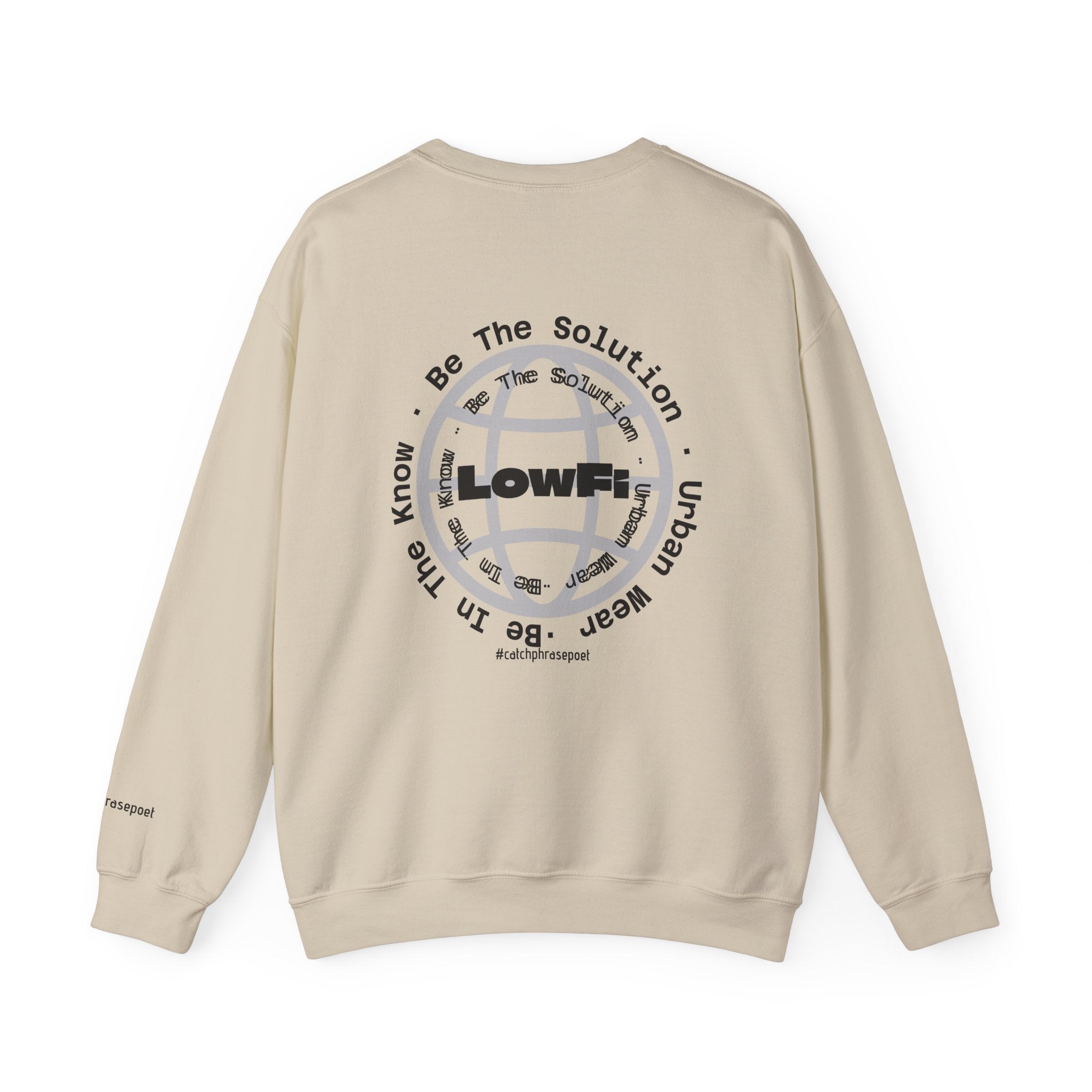 This crewneck sweatshirt brings a gritty, urban energy to everyday wear. The “LowFi” globe graphic spins like a scratched vinyl record, while the subtle “Be The Solution” message sits woven into the streetwise design—quiet confidence for people who move through the city with purpose. Mid-weight and structured, the sweatshirt wears like a reliable layer on cool evenings: crisp at the collar, soft at the touch, built to last through subway rides, late-night meetups, and weekend studio sessions. The tubular knit and ribbed collar keep the silhouette clean and the fit steady. Thoughtful production details—embroidered chest and wrist placement options, printed inner neck labels, and OEKO-TEX dyed fabric from ethically grown cotton—make this piece feel considered, not disposable. Slide it on after a long day and it settles in like an old favorite, carrying the mood of street tees and the comfort of a familiar sweatshirt.